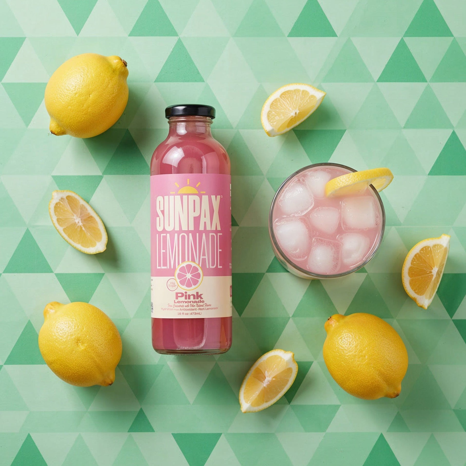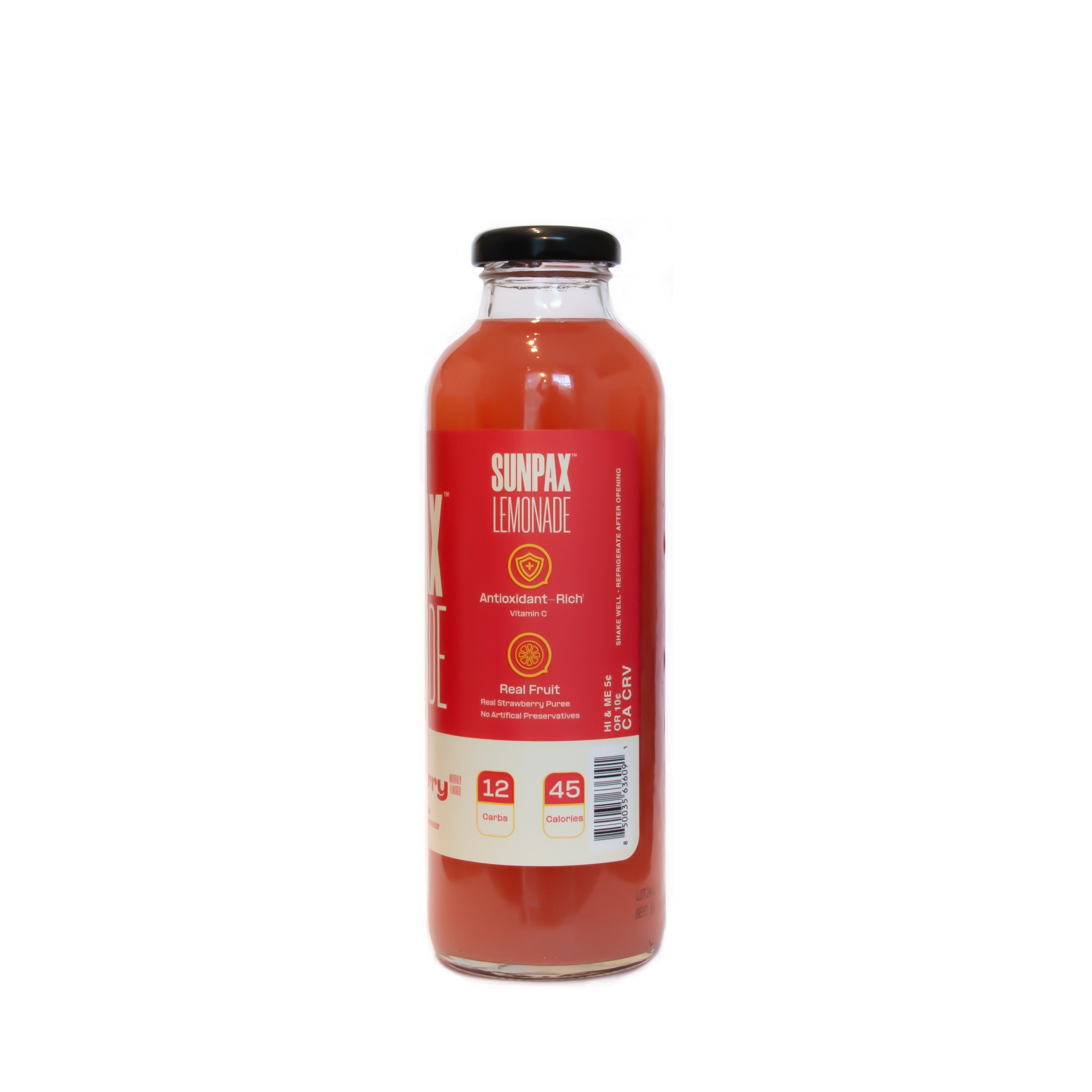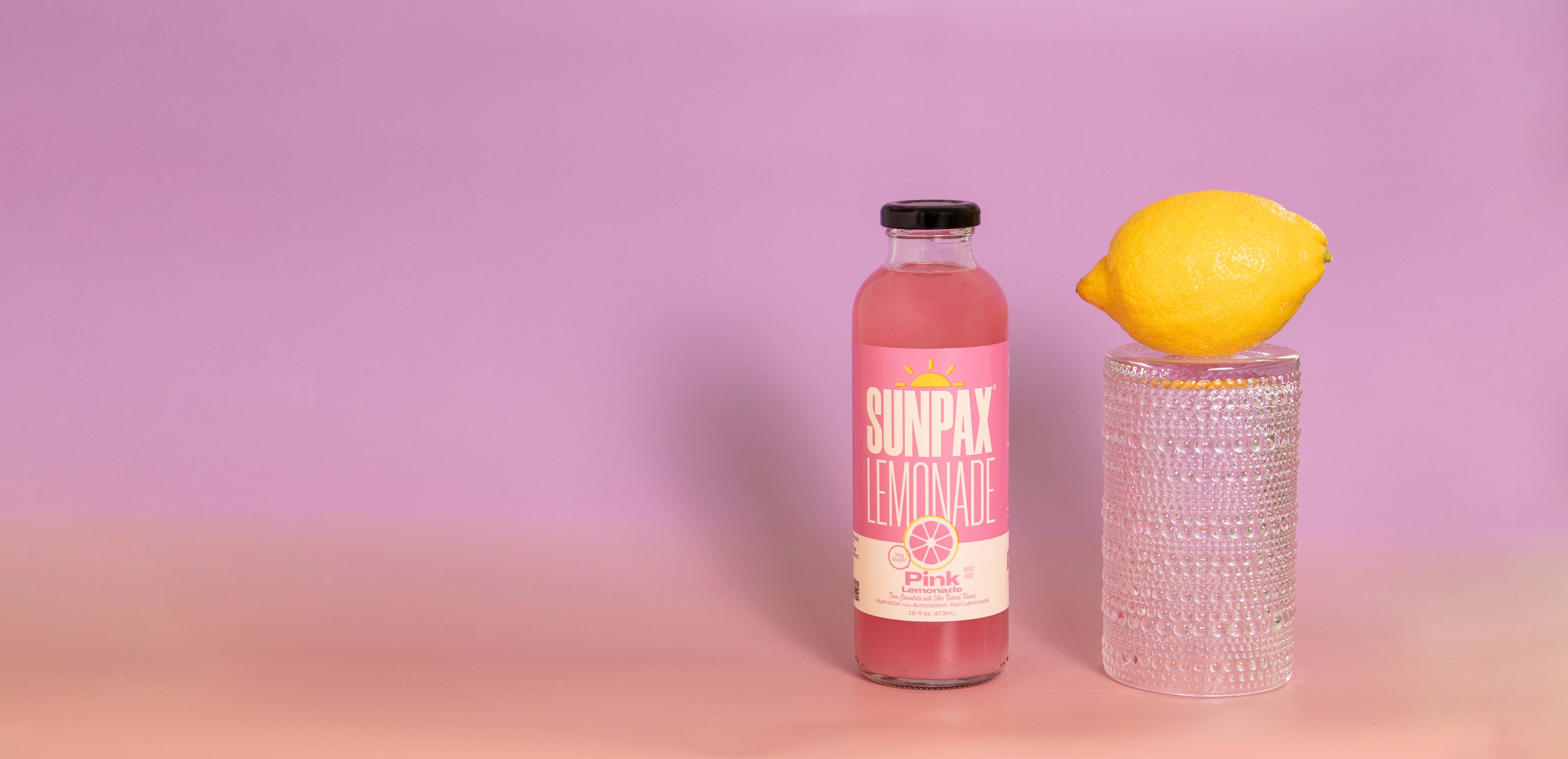 Sunpax brings lemonade to life with bright lemons and real strawberry puree — refreshment you can actually see and taste.